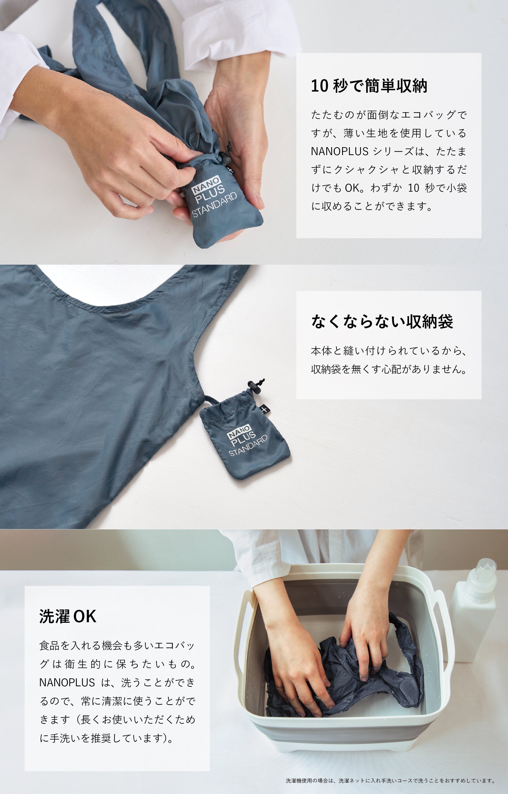 軽量・コンパクト・丈夫なエコバッグ NANOPLUSの定番サイズ NANOPLUS STANDARDです。